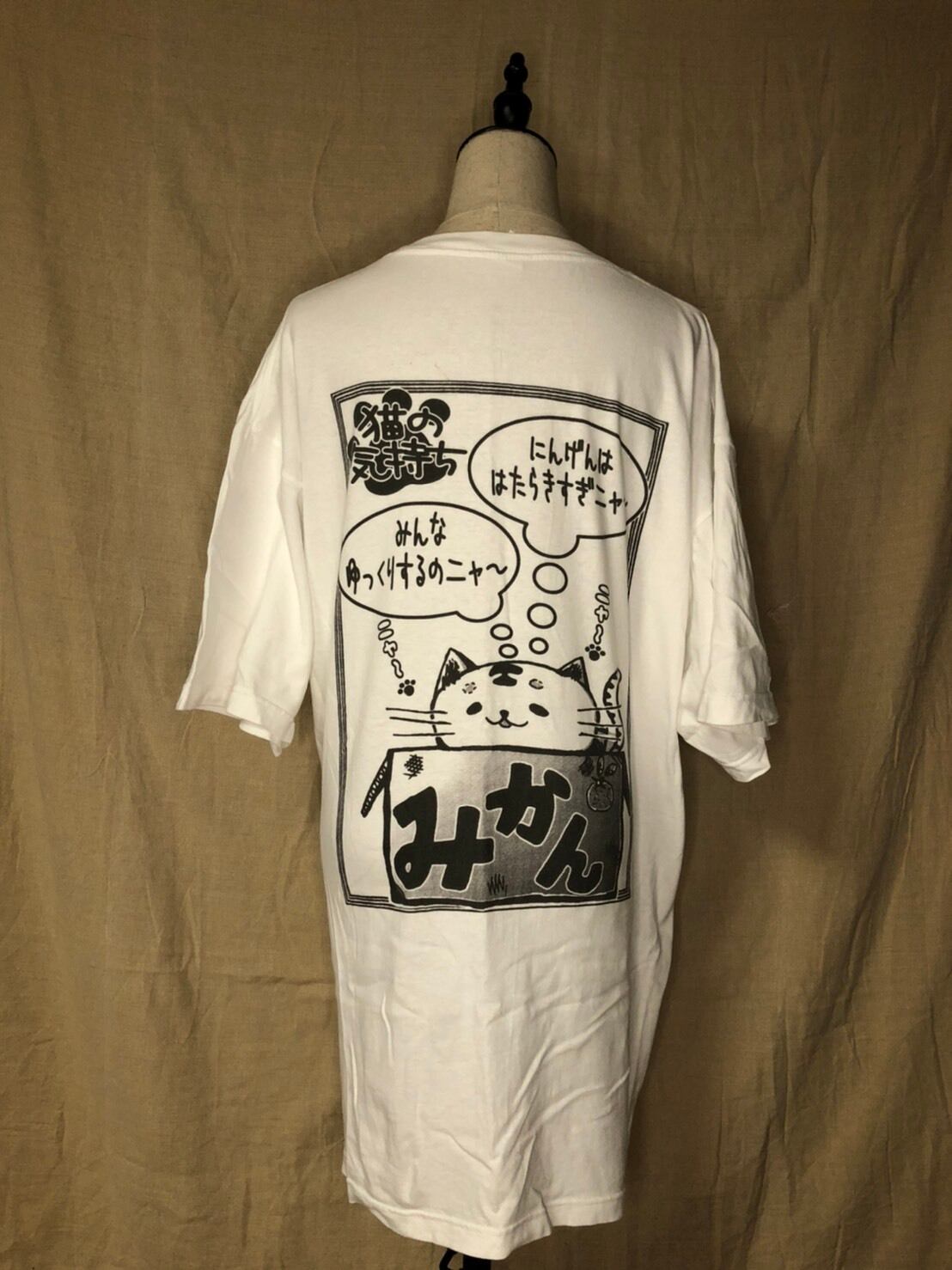 ダンボールに入ってる猫が特徴的なTシャツとなっております。